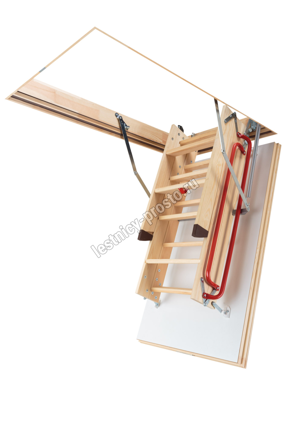 Складная чердачная лестница LWL имеет повышенные теплоизоляционные параметры и высокий класс герметичности. Утеплённая крышка люка белого цвета. Лестница оборудована специальным механизмом LXM-3 и крючком на нижней ступени марша для стержня, которые в комплексе обеспечивают лёгкость и плавность открывания и закрывания лестницы. Снабжена дополнительным поручнем для безопасного подъёма.