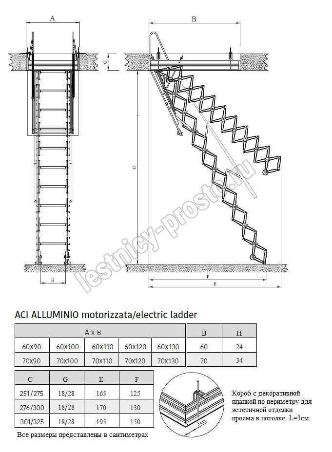 Чердачная лестница с электроприводом. Fantozziscale Motor Base 70×110 см