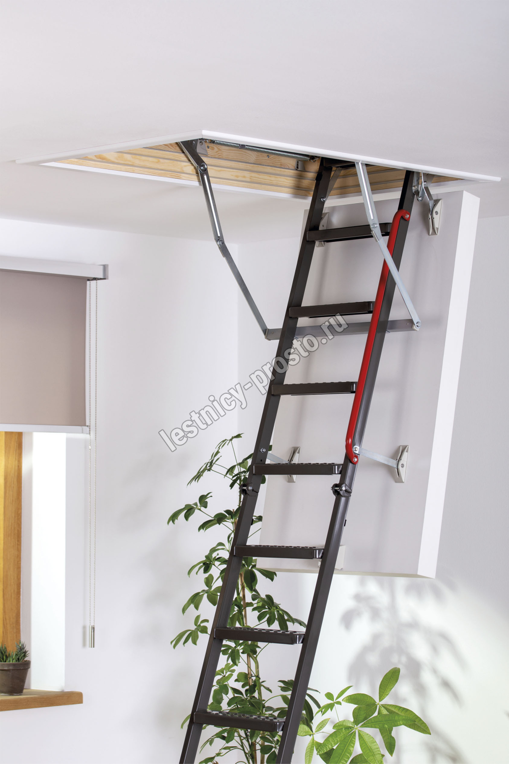 Представляет собой складную конструкцию из металлического лестничного марша и термоизоляционного люка.