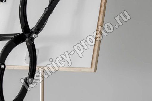 Все элементы лестницы выполнены из экологически чистых материалов и обработаны веществами, не содержащими тяжелых металлов. На ступенях антискользящие насечки. Короб лестницы изготовлен из металла. Термоизоляционная крышка типа "сэндвич" утеплена пенопластом, облицована с двух сторон ДСП белого цвета. Короб люка с уплотнителем. В комплекте деревянный стержень для открывания лестницы.