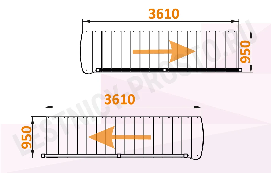 Габариты в плане 3610 × 950 мм