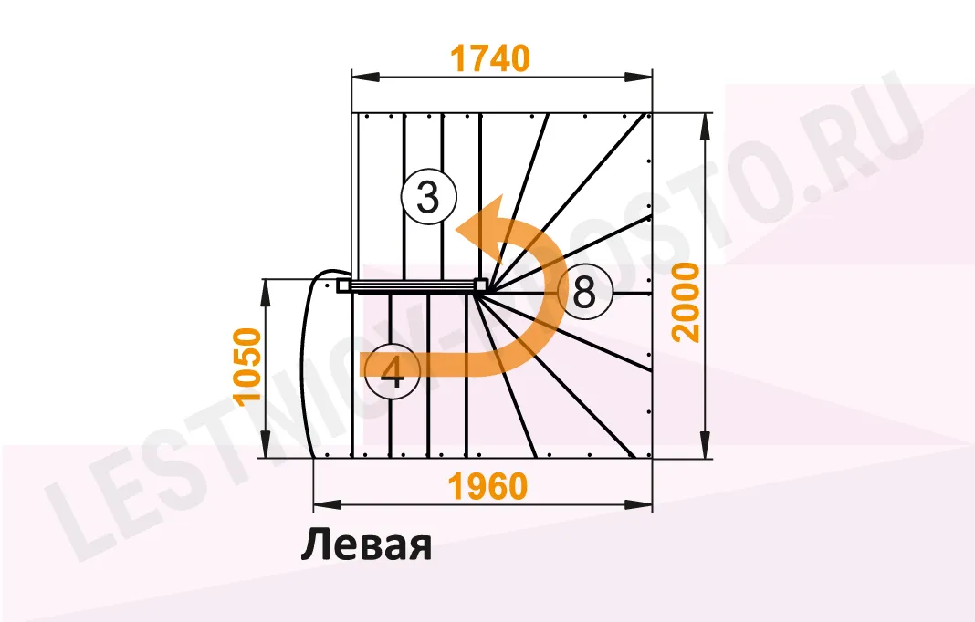 Классическая модель лестницы К-003м увеличенная под проём 2000 мм.