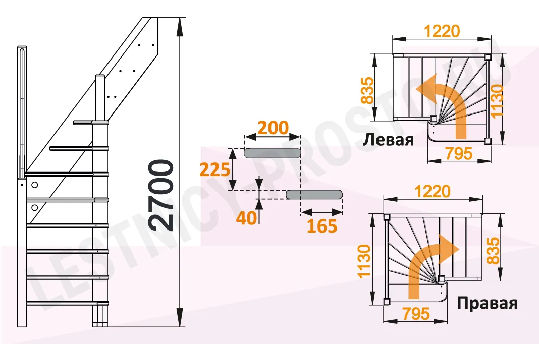 У лестницы  10 вариантов размера