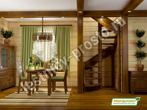 Ступени и поручень лестницы изготовлены из бука, остальные элементы из сосны.