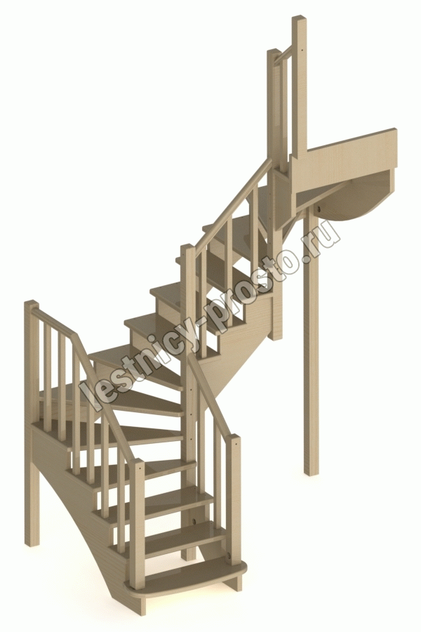 Ступени и поручень лестницы выполнены из дуба, остальные элементы из сосны. Возможно изготовление данной модели полностью из дуба.