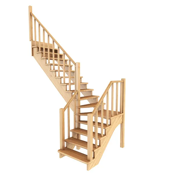 Ступени и поручень лестницы изготовлены из дуба, остальные элементы из сосны. Возможно изготовление данной модели полностью из дуба. Базовый комплект включает в себя деревянные элементы лестницы и ограждения без какого-либо покрытия.