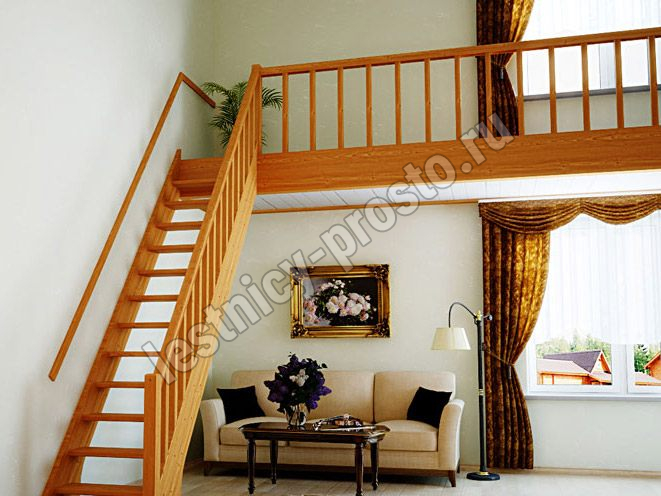 Ступени и поручень лестницы изготовлены из дуба, остальные элементы из сосны.