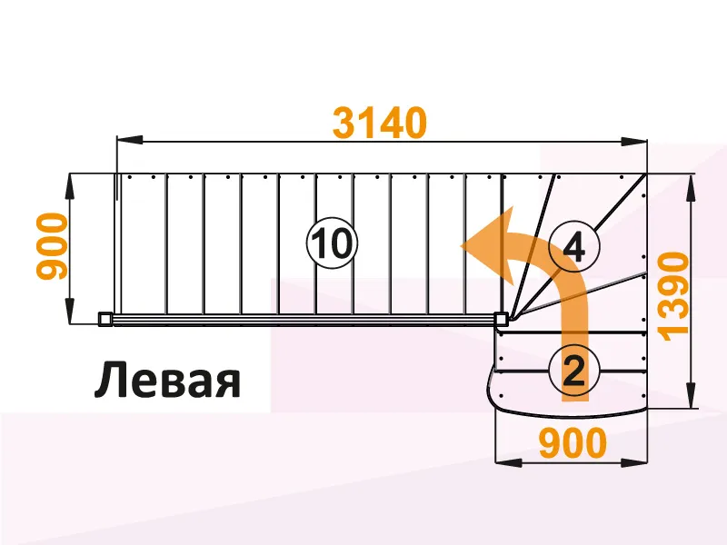 Лестница К-001М/5 с поворотом налево