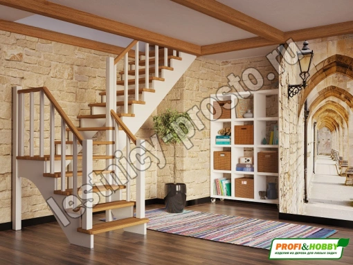 Базовый комплект включает в себя деревянные элементы лестницы и ограждения без какого-либо покрытия.