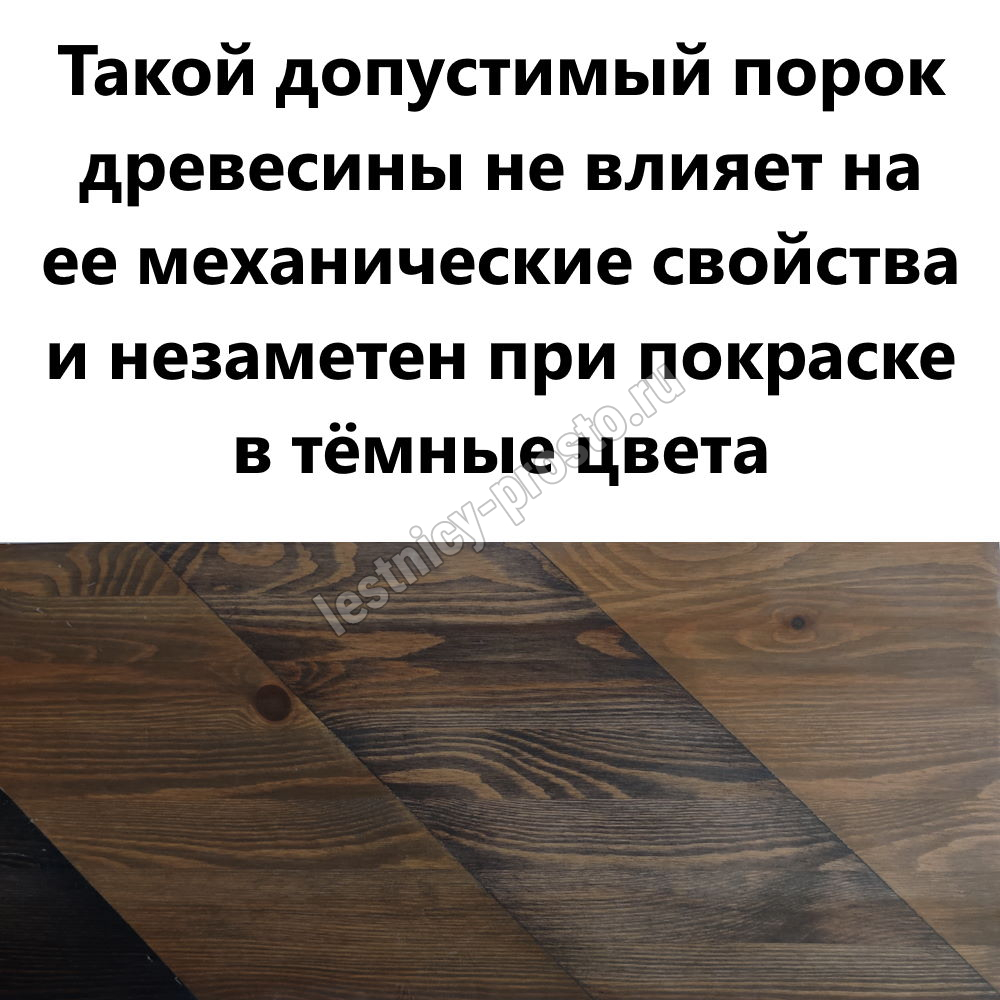 Обратите внимание! Лестница изготовлена из сосны эконом-класса, что выражено в заметных вкраплениях синевы, которая не отражается на прочности лестницы, но может быть видна при покраски в светлые тона или при покрытии прозрачными средствами.