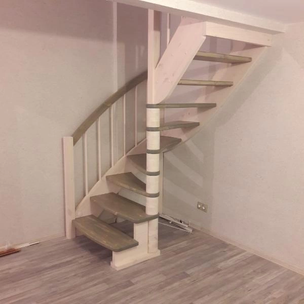 Базовый комплект включает в себя деревянные элементы лестницы и ограждения без какого-либо покрытия.