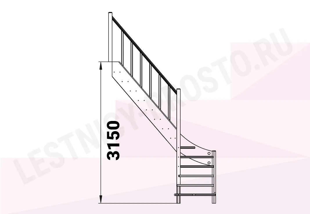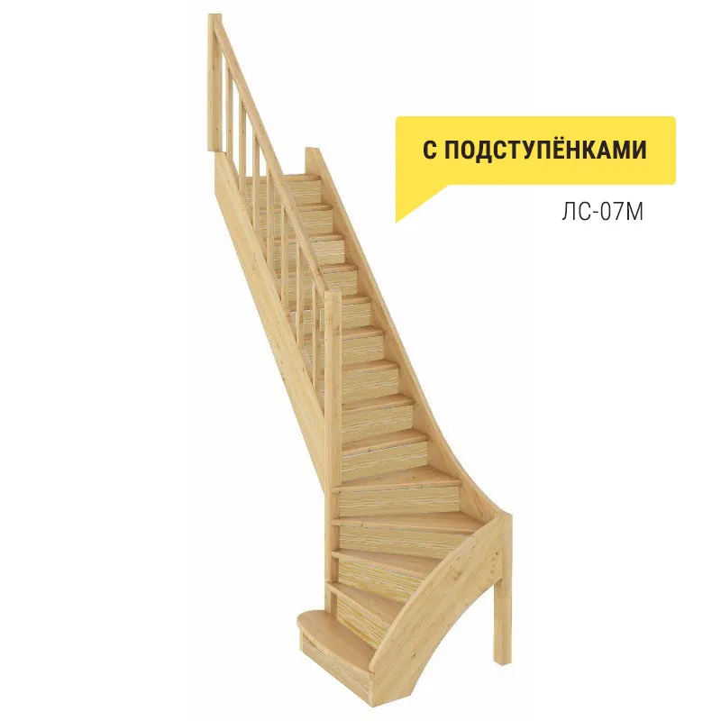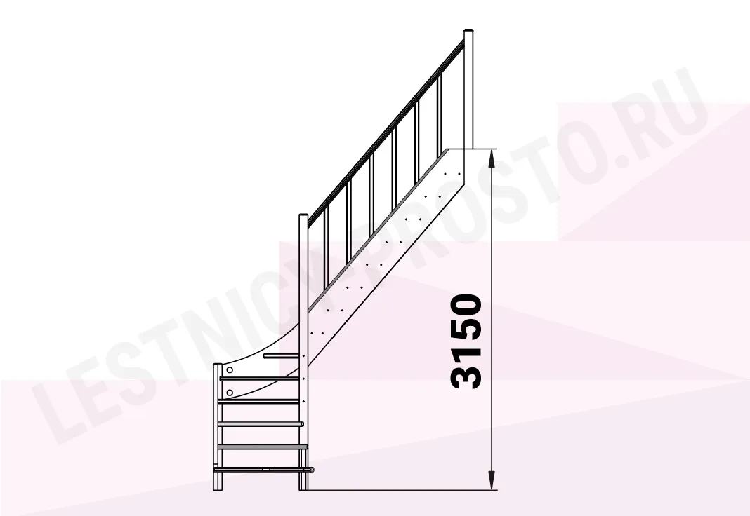 Лестница из сосны ЛС-07М/5 с подступёнками под покраску