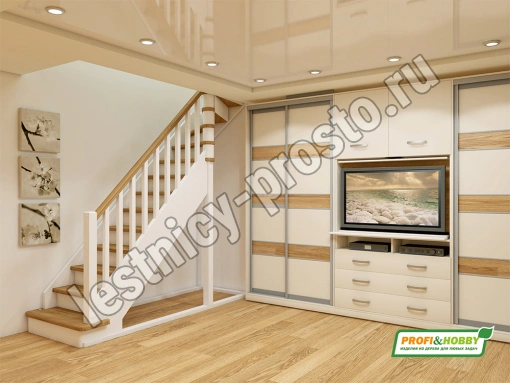 В производстве лестницы ЛС-215м под покраску используется сосна с небольшими изменениями цвета, что практически не влияет на ее механические свойства и почти незаметно при покраске в темные цвета. Базовый комплект включает в себя деревянные элементы лестницы с подступенками и ограждения без какого-либо покрытия.