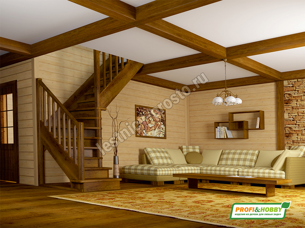 В производстве лестницы ЛС-225м под покраску используется сосна с небольшими изменениями цвета, что практически не влияет на ее механические свойства и почти незаметно при покраске в темные цвета. Базовый комплект включает в себя деревянные элементы лестницы и ограждения без какого-либо покрытия.