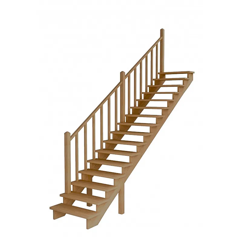 Базовый комплект включает в себя деревянные элементы лестницы и ограждения без какого-либо покрытия.