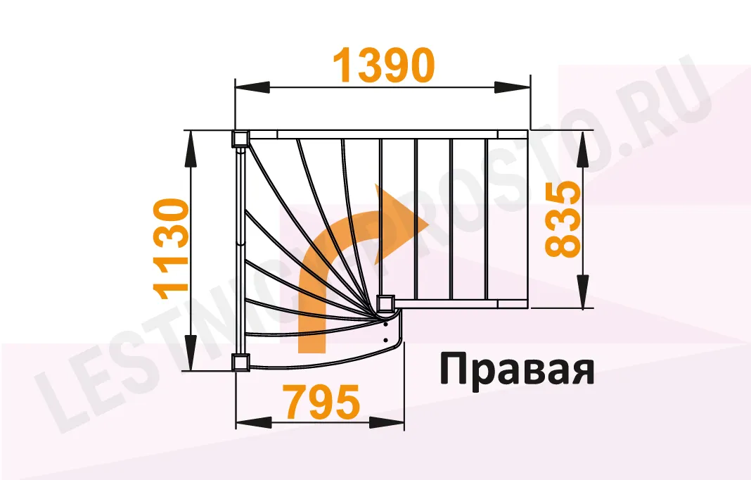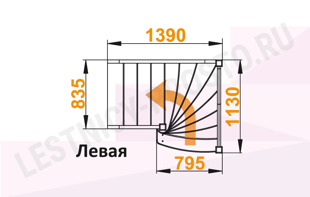 Схема лестницы ЛС-91М+1 с поворотом налево