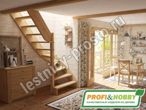 Базовый комплект включает в себя деревянные элементы лестницы без какого-либо покрытия.
