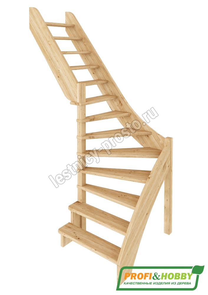 Базовый комплект включает в себя деревянные элементы лестницы без какого-либо покрытия.