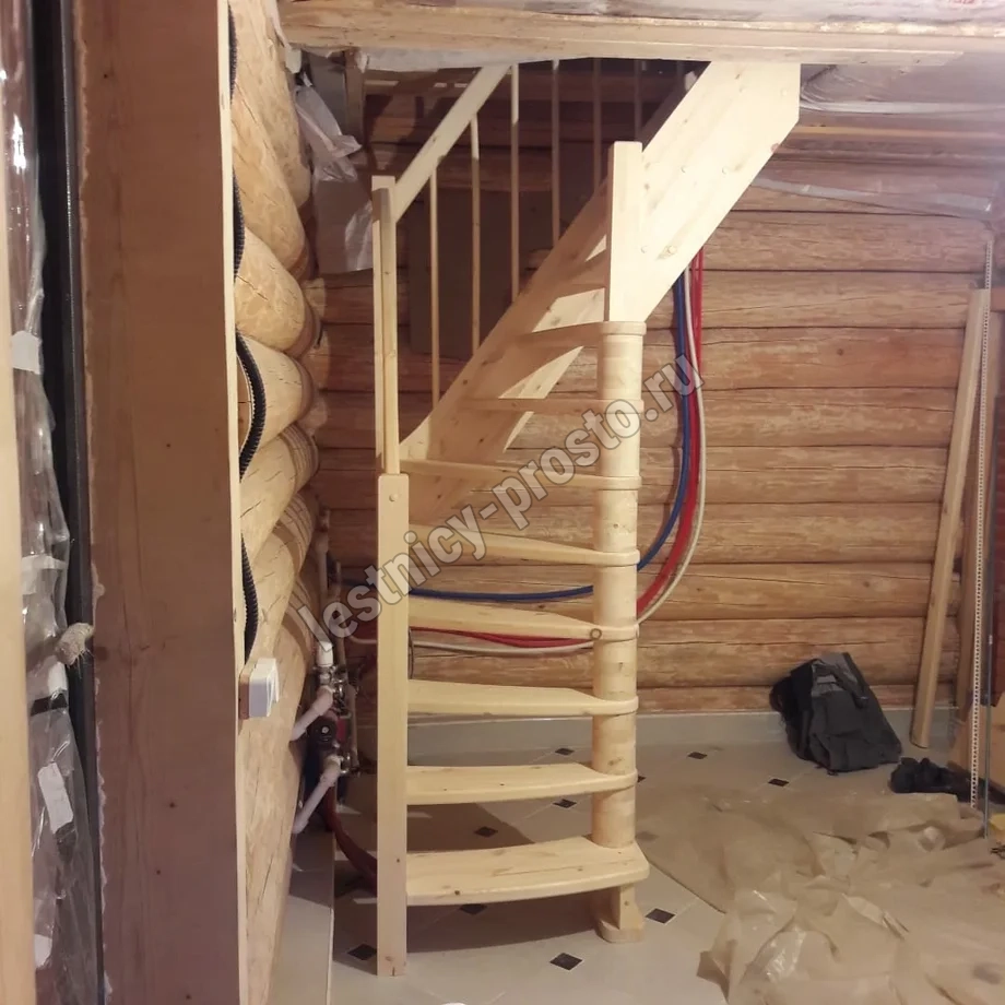 Базовый комплект включает в себя деревянные элементы лестницы и ограждения без какого-либо покрытия.