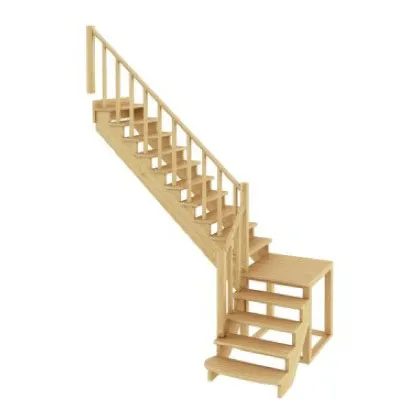 Материал: ясень (ступени и поручень), сосна (косоуры, столбы, балясины)