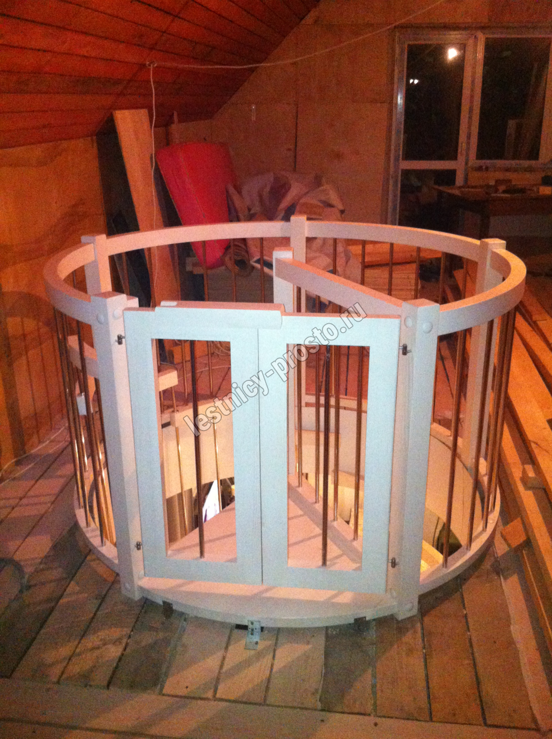 Все деревянные элементы изготовлены из древесины «экстра» без сучков. Лестница отшлифована и подготовлена под покраску, которая не включена в стоимость.