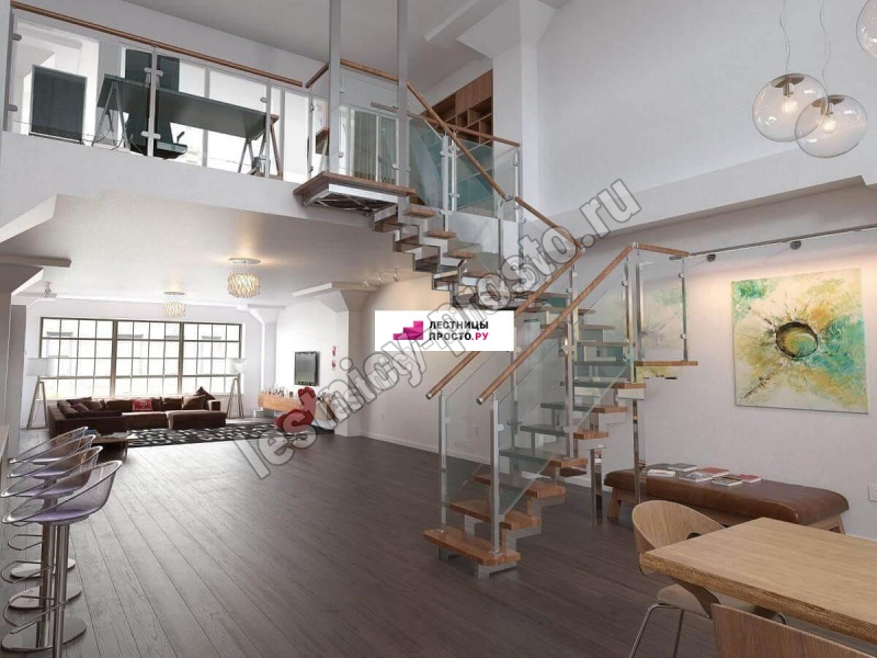 Ограждение для П-образной лестницы PROSTO DUE/DOUBLE со стеклом