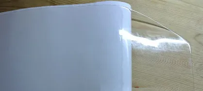 7. Постепенно снимая пленку, по мере открывания клеевого слоя, прижимаем покрытие к поверхности.