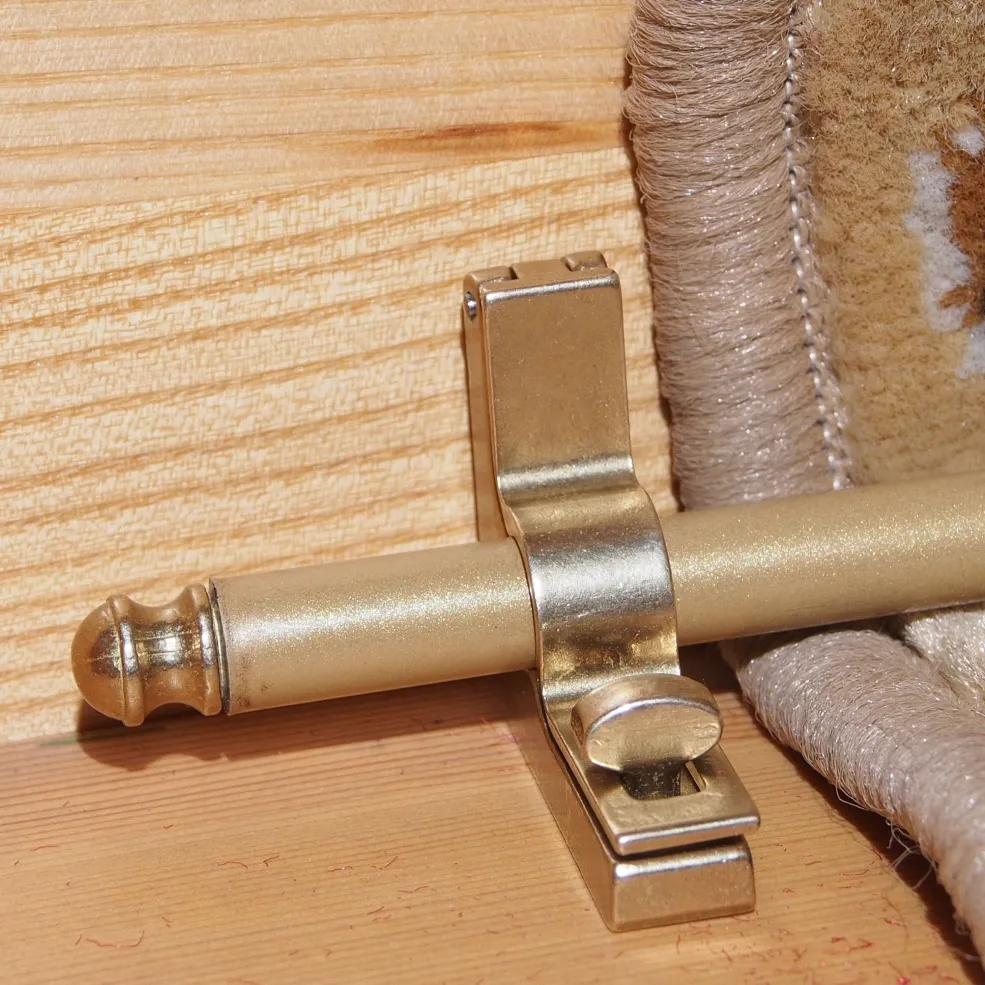 Ковродержатель комплектуется двумя держателями из алюминия цвета золото, а также алюминиевой трубкой цвета золото, длиной от 101 до 135 см.