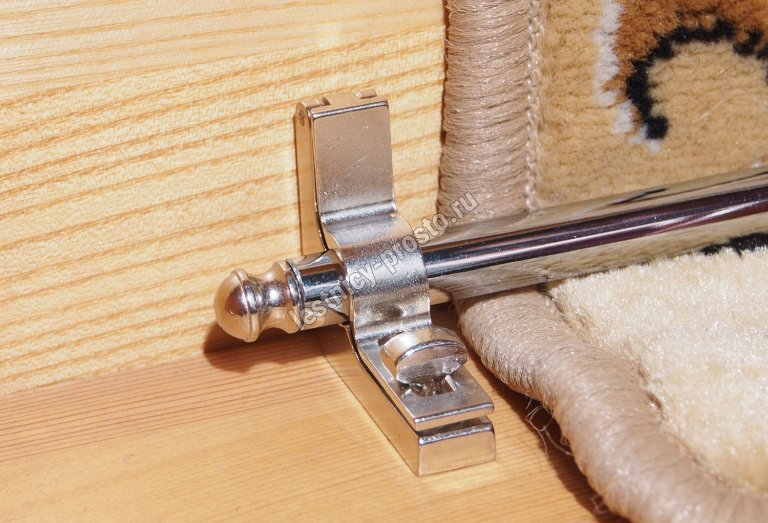 Ковродержатель комплектуется двумя держателями и двумя заглушками из латуни, а также хромированной металлической трубкой.