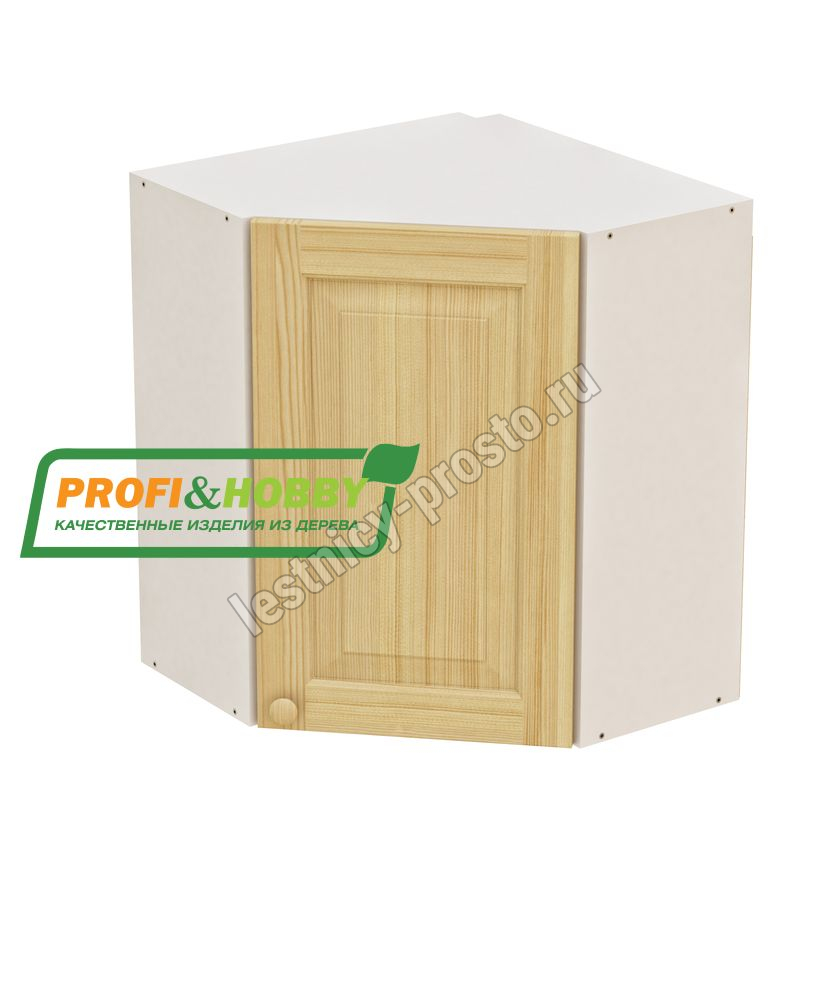Шкаф навесной угловой 610х610х720 + фасад сосна бесцветный акриловый лак