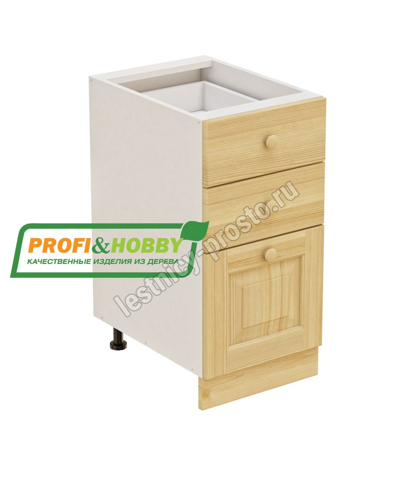 Тумба 3 ящика 400х530х720 + фасад сосна бесцветный акриловый лак