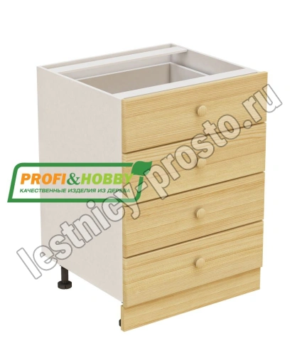 Тумба 4 ящика 600х530х720 + фасад сосна бесцветный акриловый лак