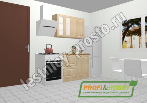 Кухня 1.2 х 2.14 м, массив сосны, бесцветный акриловый лак