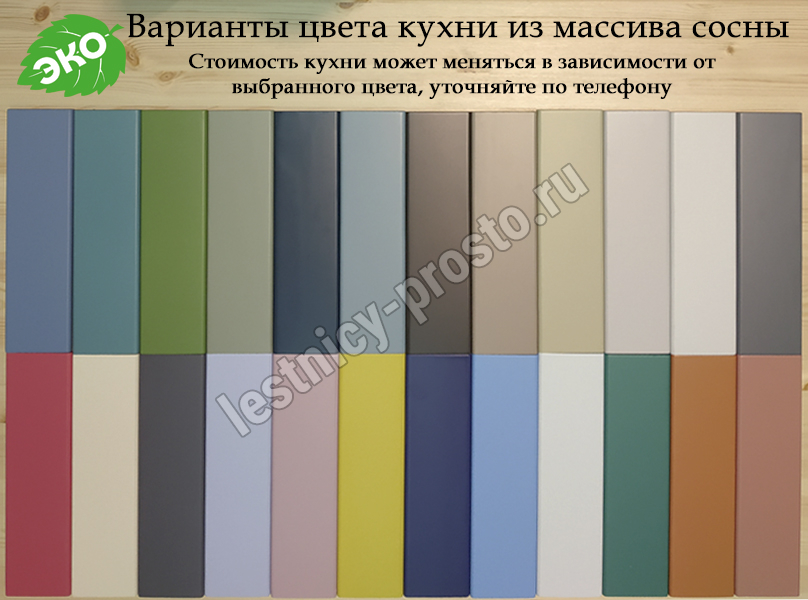 • Кухонные модули из сосны с покраской цветными ЭКО эмалями и маслами