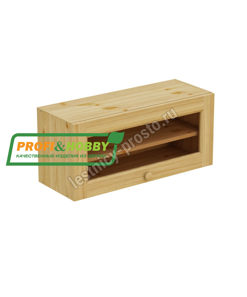Шкаф-антресоль навесной 800 х 300 х 360, под стекло, сосна, бесцветный акриловый лак