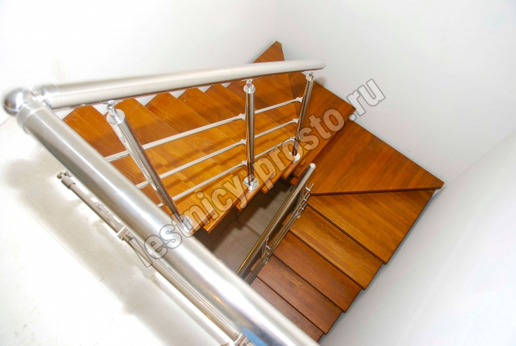 Основой лестницы Prosto Double 50×100 служит усиленный двойной металлический каркас из профильной трубы 50×100 мм (включая 4 опоры на пол под поворотом), который обеспечивает надёжную прочность конструкции и современный актуальный дизайн. Данный вариант лестницы предполагает поворот на 180° через забежные ступени. Под заказ возможно изготовление каркаса под поворотную площадку.