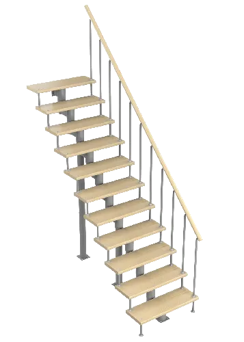 Основой лестницы Prosto Due 40×80 служит двойной металлический каркас из профильной трубы 40×80 мм (включая 4 опоры на пол под поворотом), который обеспечивает надёжную прочность конструкции и современный актуальный дизайн. Данный вариант лестницы предполагает поворот на 180° через забежные ступени. Под заказ возможно изготовление каркаса под поворотную площадку.