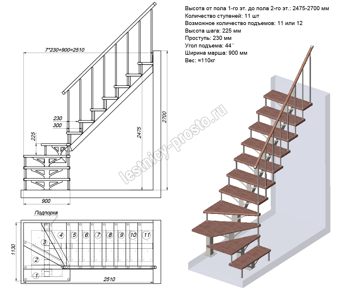 Под заказ возможно изготовление каркаса лестницы PROSTO MONO с поворотом начинающимся с любой ступени, а также, возможно реализовать поворот через площадку. Звоните нам по любым возникающим вопросам, мы поможем сориентироваться и сделать правильный выбор.