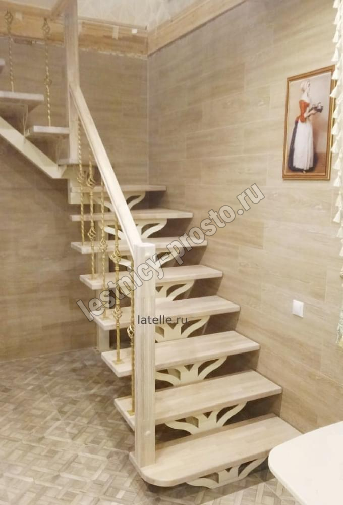 Ступени лестницы изготовлены из дерева категории А/В паркетной склейки без какого-либо покрытия.