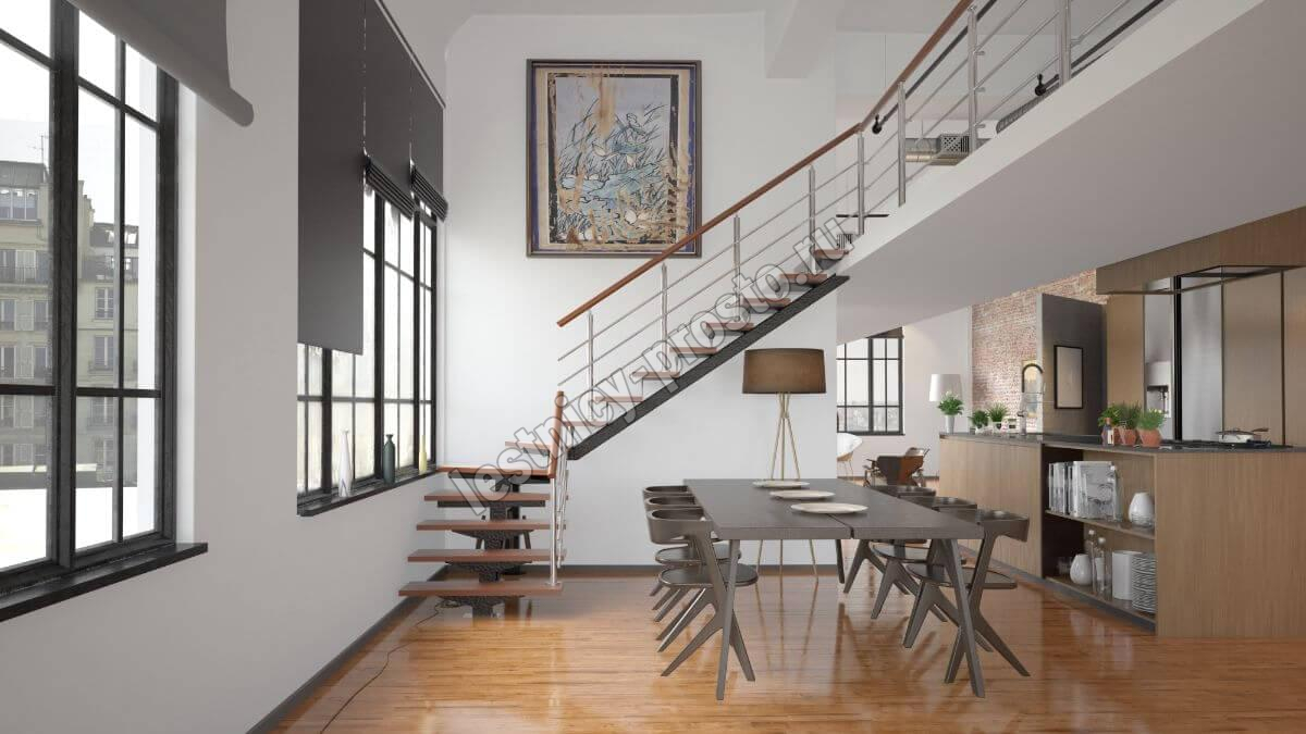 Лестница PROSTO MONO прекрасно подходит для интерьеров с минималистичным дизайном, дизайном в стиле лофт или хайтек.