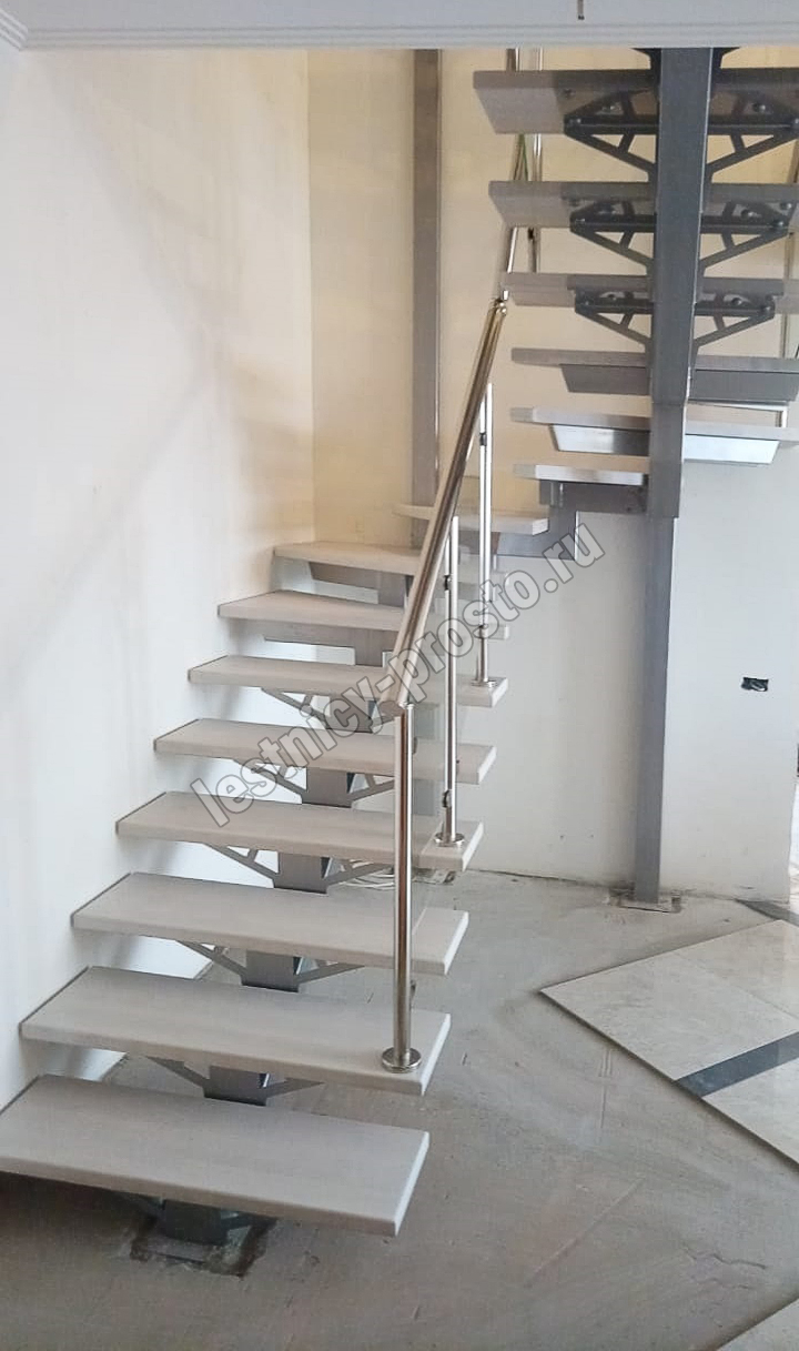 Лестница PROSTO MONO прекрасно подходит для интерьеров с минималистичным дизайном, дизайном в стиле лофт или хайтек. Основой лестницы служит цельносварной центральный косоур, который обеспечивает надёжную прочность конструкции и "парящий" дизайн, лестница с таким каркасом в интерьере смотрится легко и воздушно.