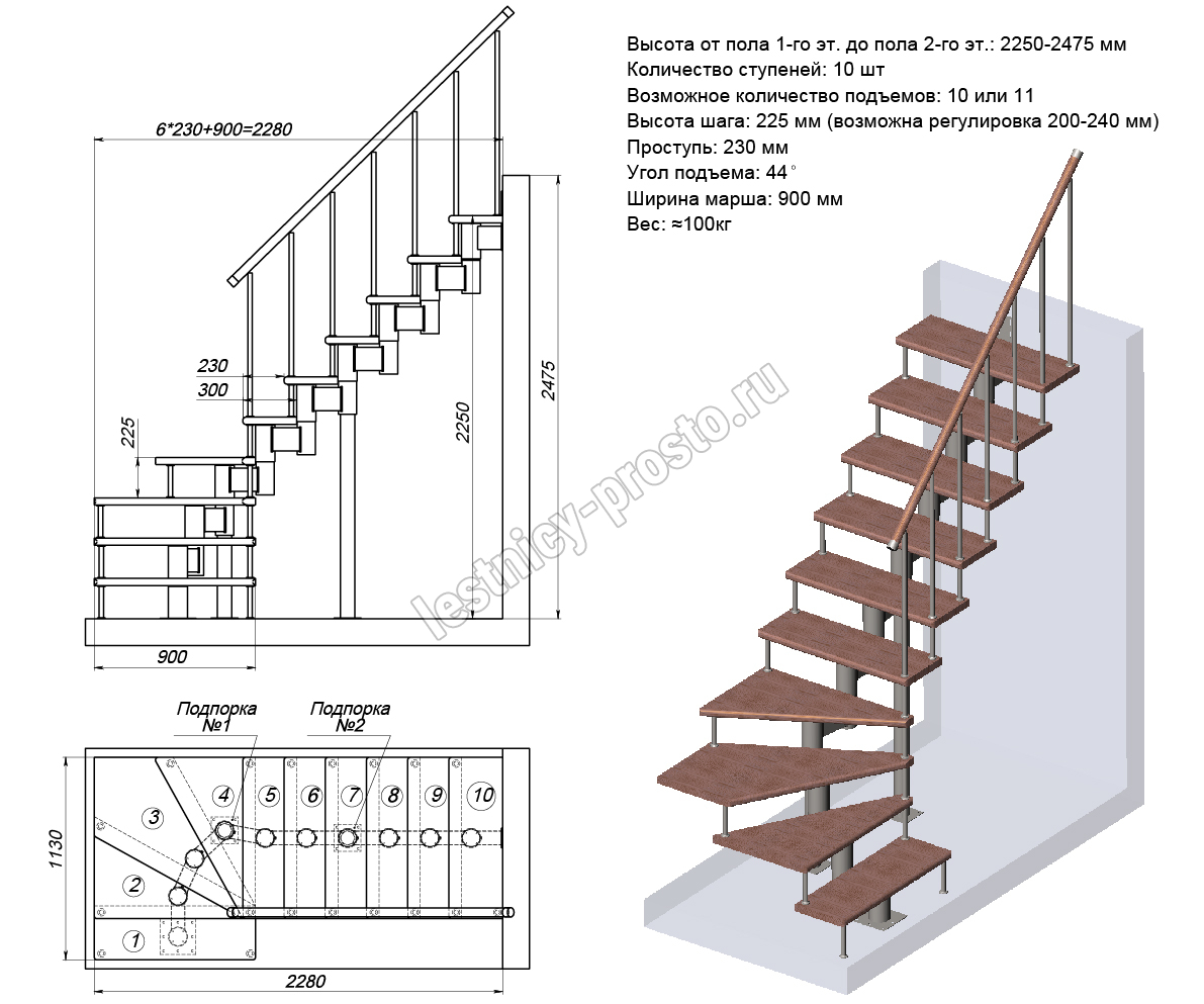 Стоимость указана для комплекта из модульного каркаса и деревянных ступеней без покрытия (ограждение можно выбрать отдельно)