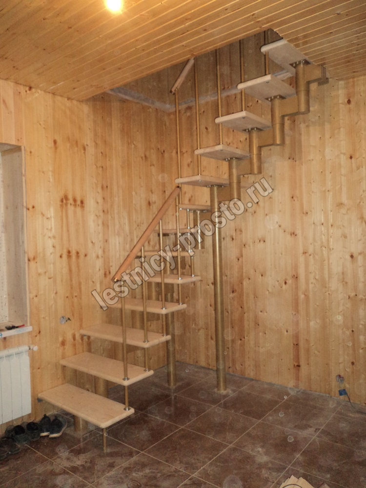 Каркас лестницы представляет собой набор модулей, которые комплектуются уже готовыми к монтажу.