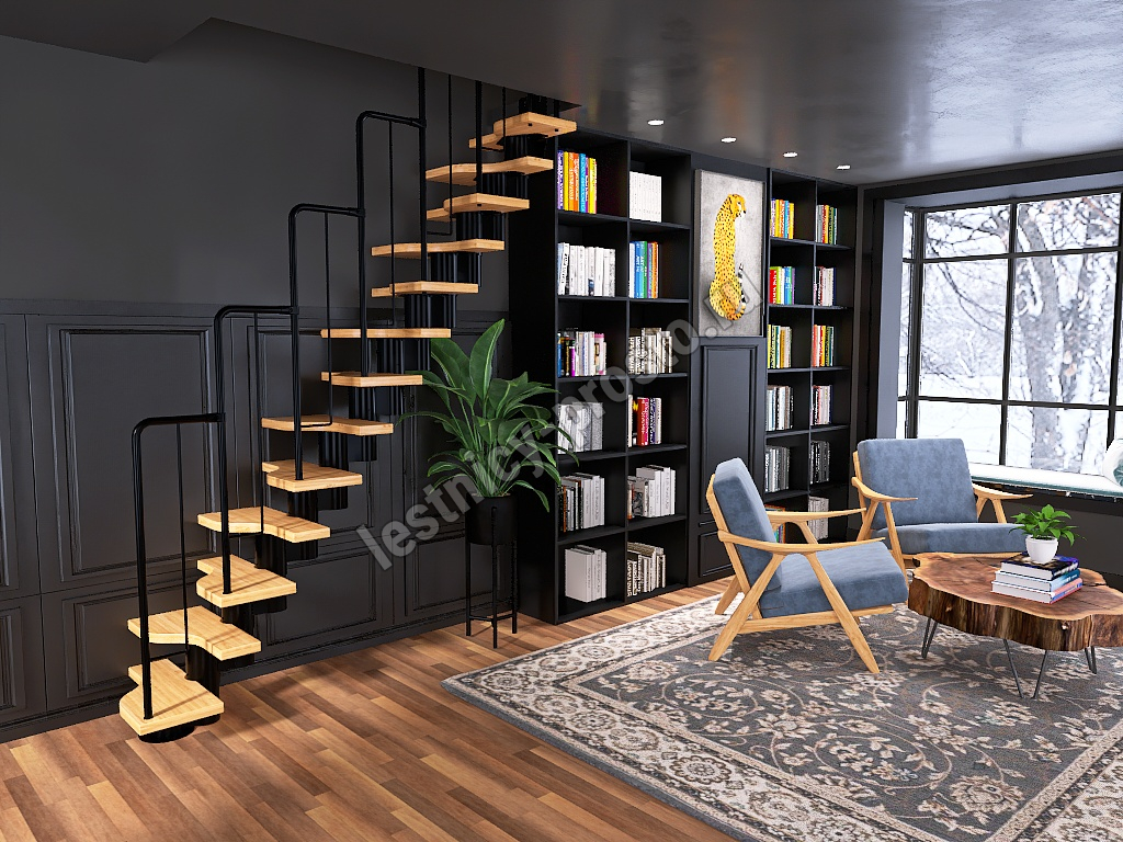 Лестница Prosto Urban Black гусиный шаг 700 мм, h216-312 см (12 ступеней), бук