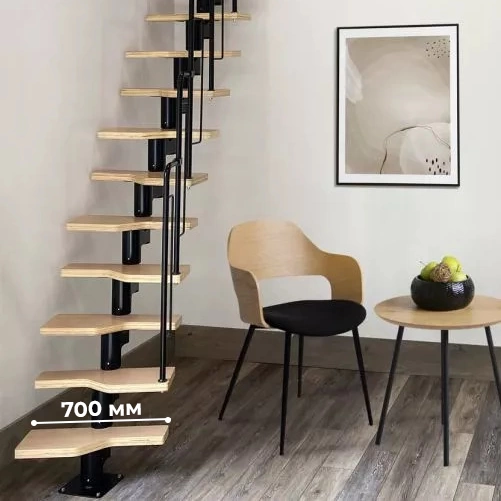 Лестница Prosto Urban Black гусиный шаг 700 мм, h216-312 см (12 ступеней), дуб