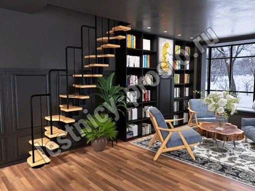 Лестница Prosto Urban Black гусиный шаг 600 мм, h216-312 см (12 ступеней), ясень
