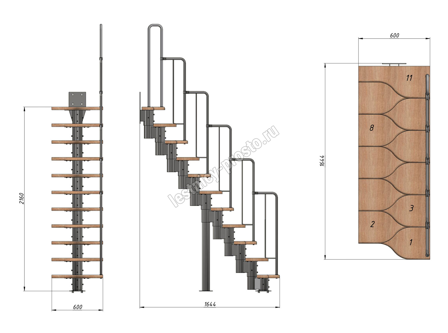 Высота лестницы 1980 - 2880 (11 ступеней) мм