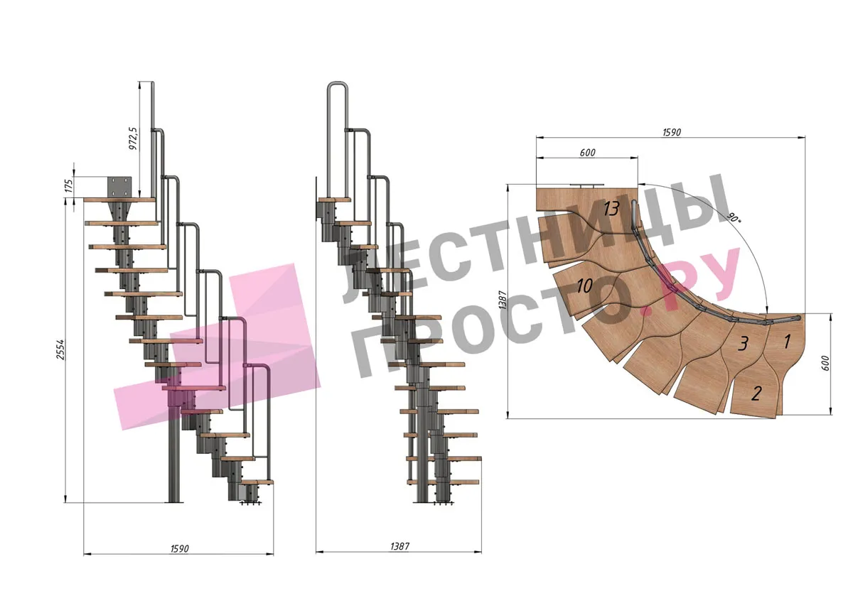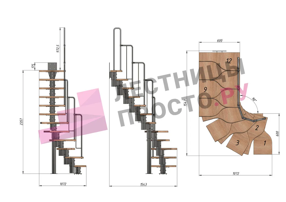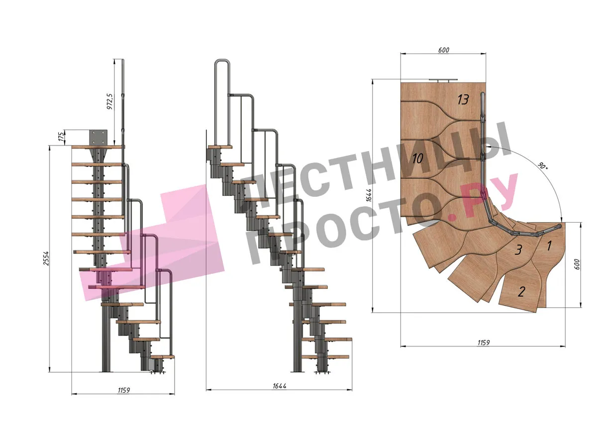 Лестница Prosto Urban White гусиный шаг 600 мм/ Ступени из берёзы мультиплекс