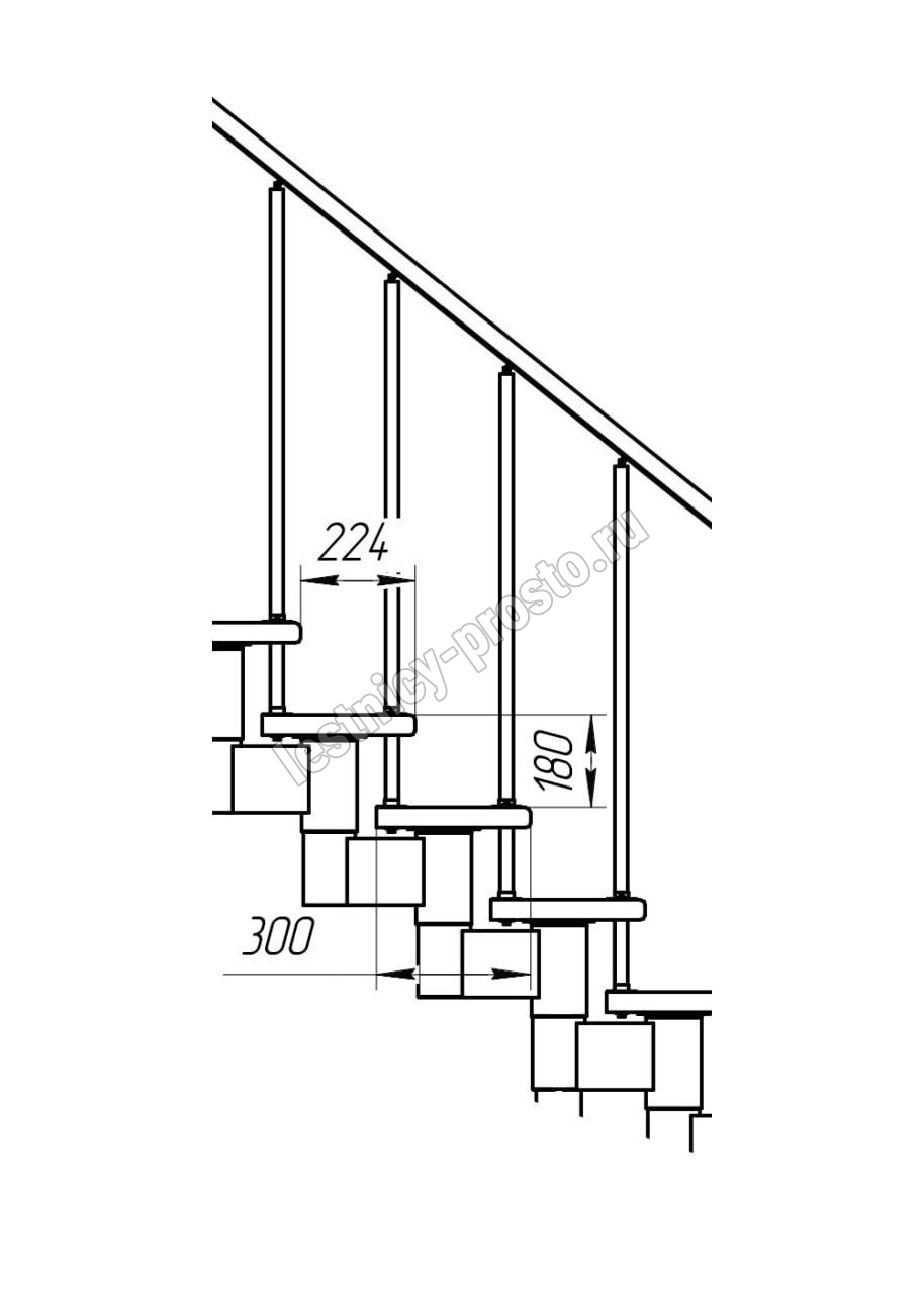 Модульная лестница Фаворит 180 2700-2850, Серый, Сосна, Крашеная, Без Ступений