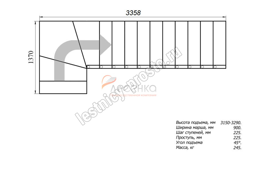 Модульная лестница Фаворит 225 3150-3290, Черный, Сосна, Крашеная, Без Ступений